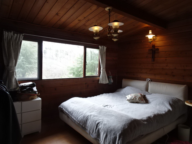 雰囲気のあるウェスタンレッドシダーの平屋ログハウス。お庭と掘り込み車庫有ります。合併浄化槽付き。